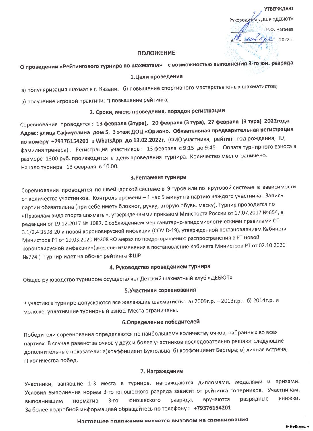 Рейтинговые турниры в клубе "Дебют" (ул.Сафиуллина, 5) в феврале