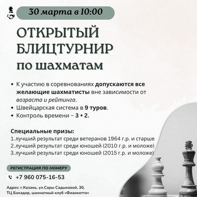 30 марта в клубе "Фианкетто" (ул.Сары Садыковой, 30) состоится блицтурнир