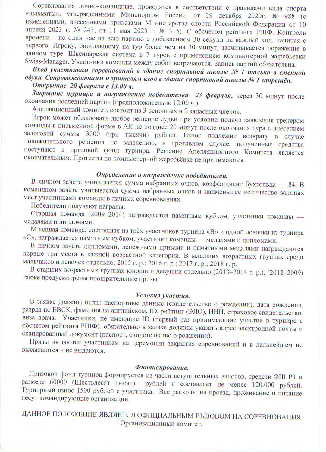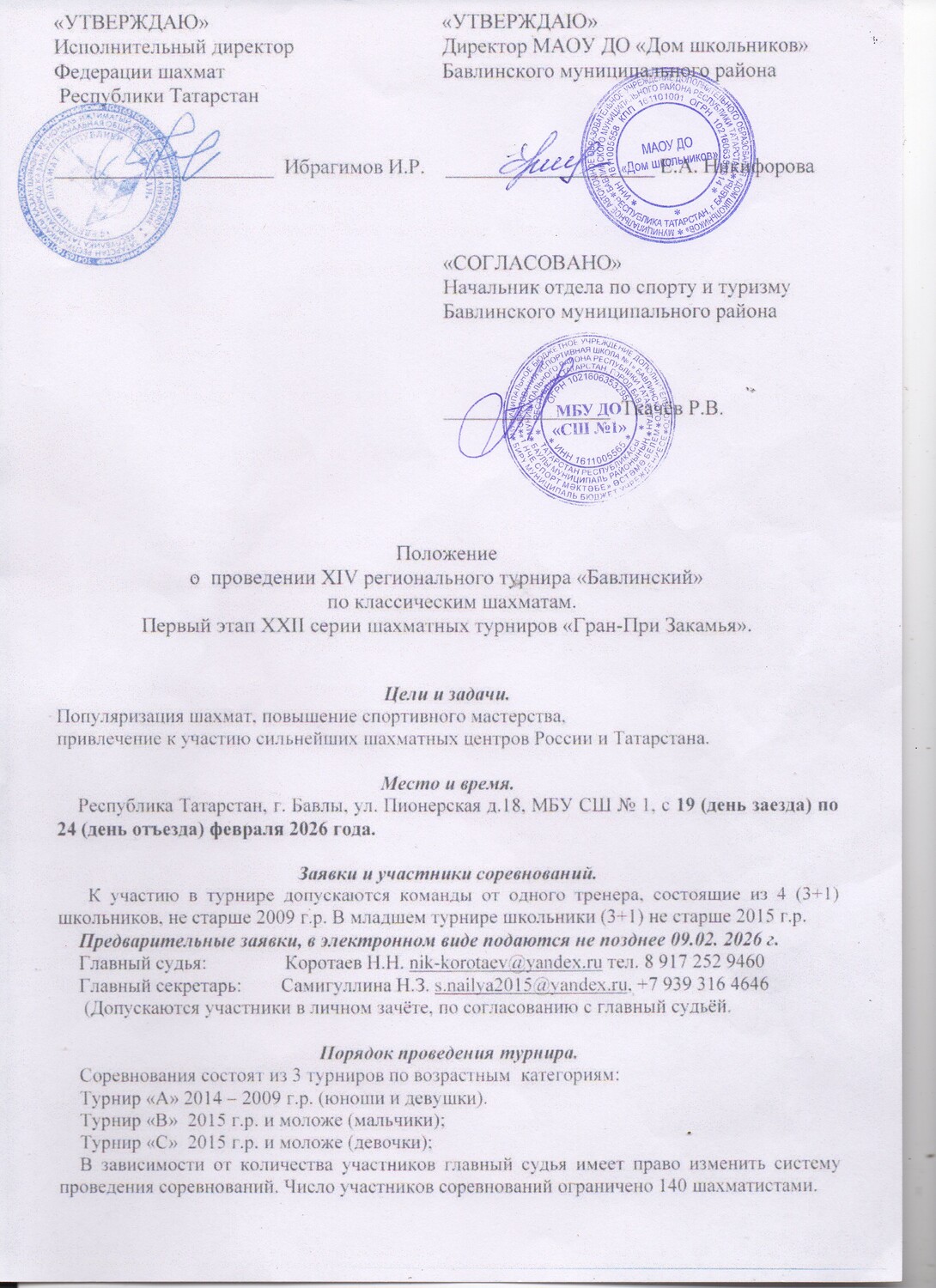IV региональный турнир "Бавлинский" пройдет в Бавлах с 19 февраля (день приезда) по 24 февраля (день отъезда)
