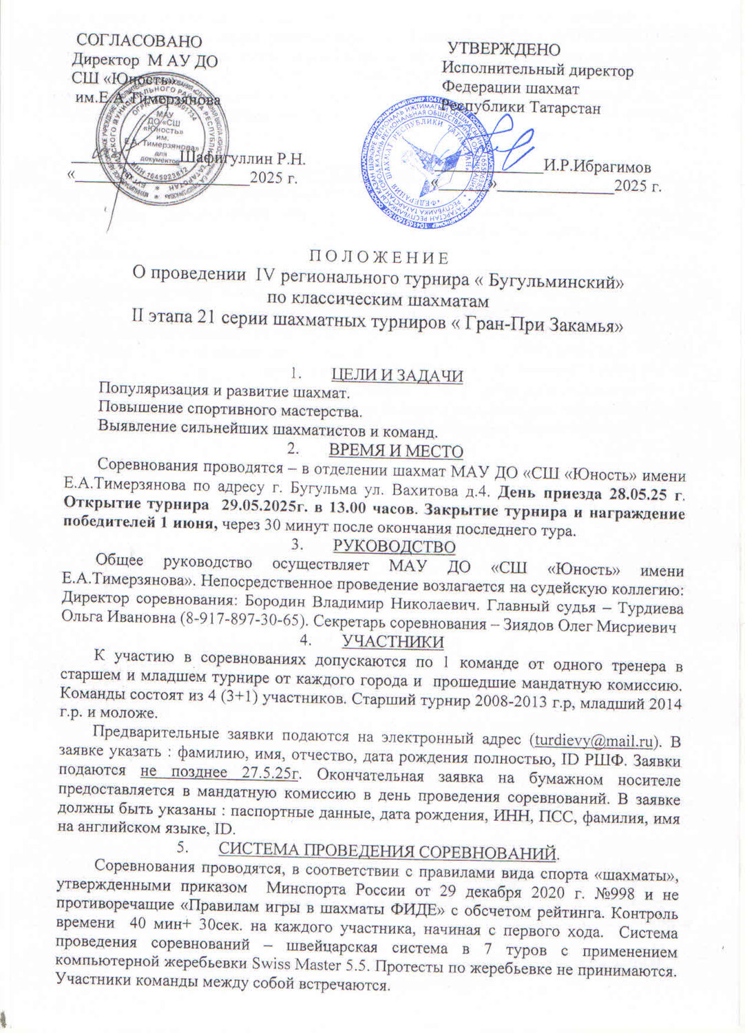 Главная » 2025 » Апрель » 15 » IV Региональный турнир "Бугульминский"
