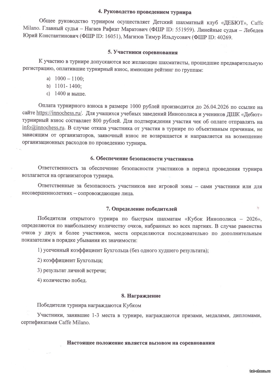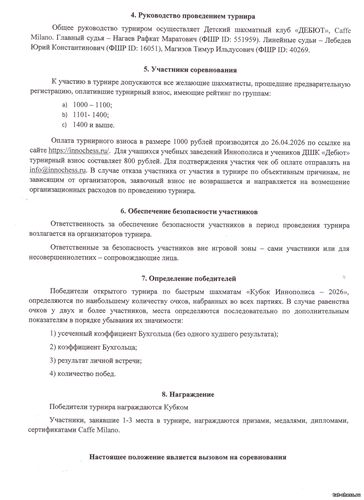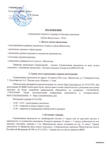 Открытый турнир по быстрым шахматам "Кубок Иннополиса 2026" состоится 26 апреля в г.Иннополис