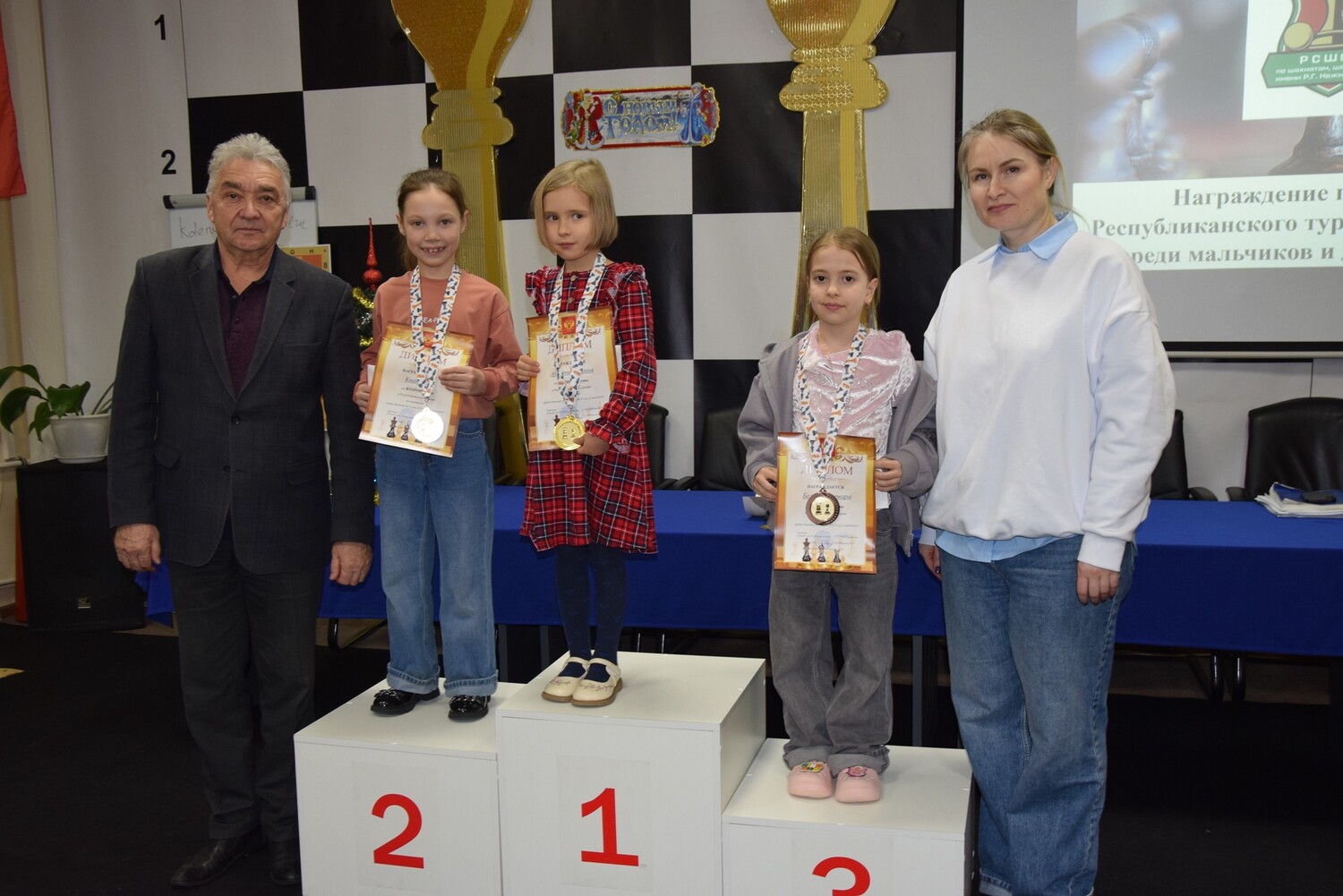 Среди девочек 1 место - Анна Андронаки (Казань) 2 место - Майя Кван (Набережные Челны) 3 место - Варвара Беляева (Набережные Челны)