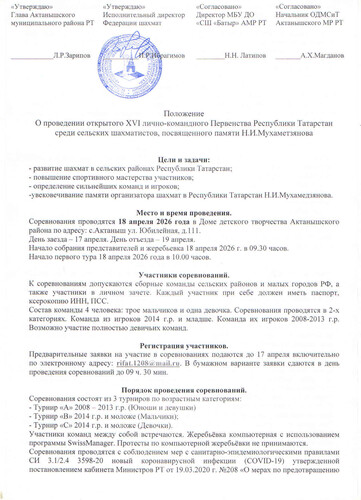 Открытое первенство Актанышского района по быстрым шахматам, посвященное памяти участника СВО Фаррахова Нияза Ильдаровича состоится 29 апреля состоится по адресу: с.Актаныш, ул.Юбилейная,111