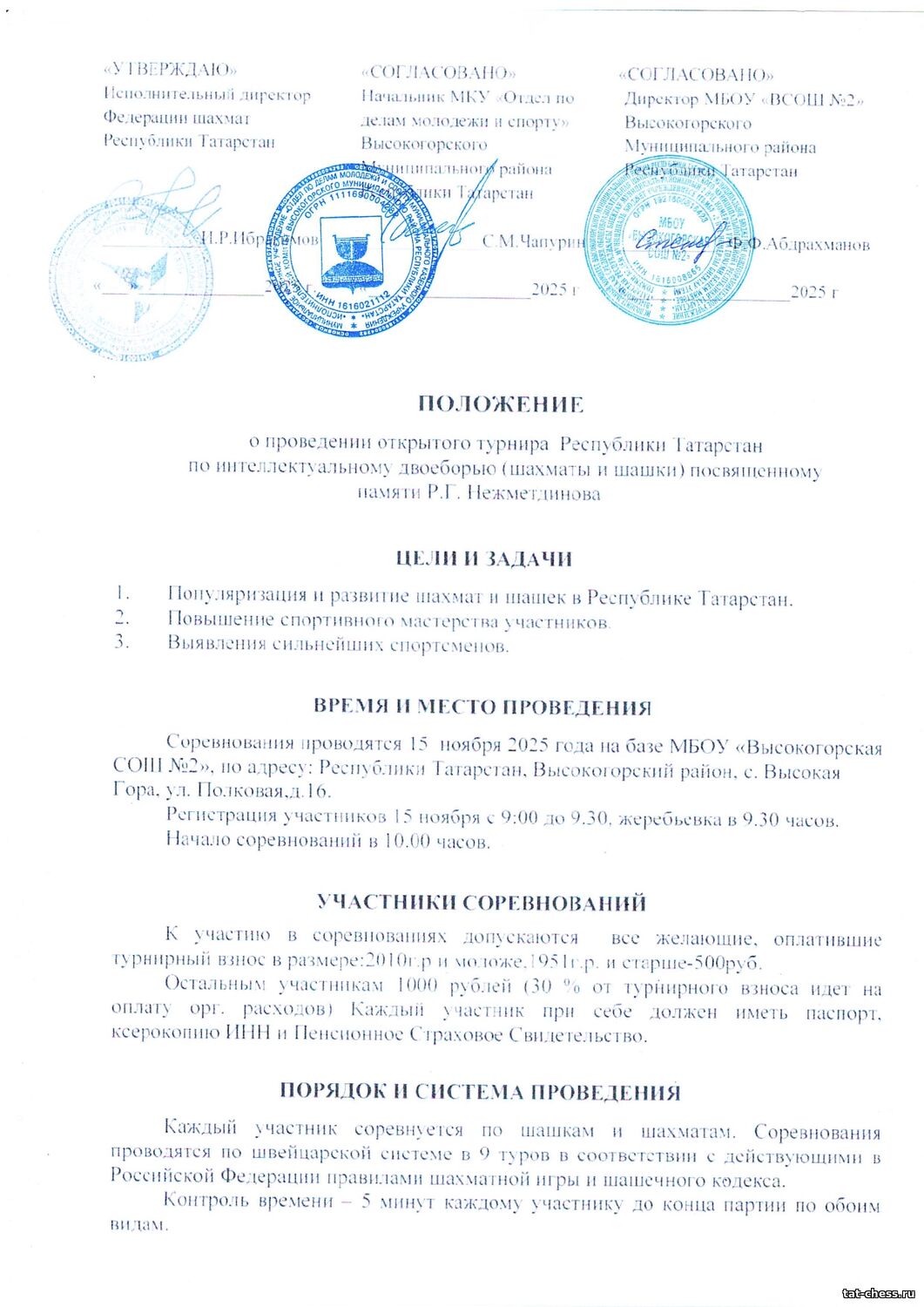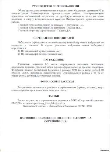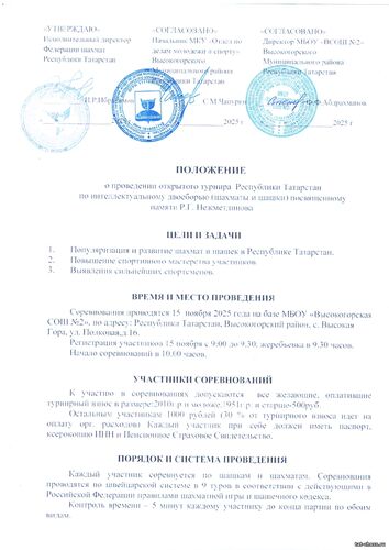 Открытый турнир Республики Татарстан по интеллектуальному двоеборью (шахматы и шашки) пройдет 15 ноября в с.Высокая Гора Положение