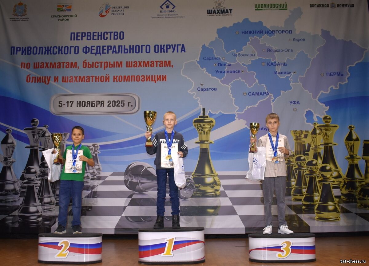 Поздравляем спортсменов Республики Татарстан с успешным выступлением на первенстве Приволжского федерального округа ! Классические шахматы Морозов Архип (Казань)– 1 место среди мальчиков до 11 лет Ларионов Михей (Казань) -3 место среди мальчиков до 11 лет Хузина Зулейха (Кукмор) - 1 место среди девушек до 19 лет