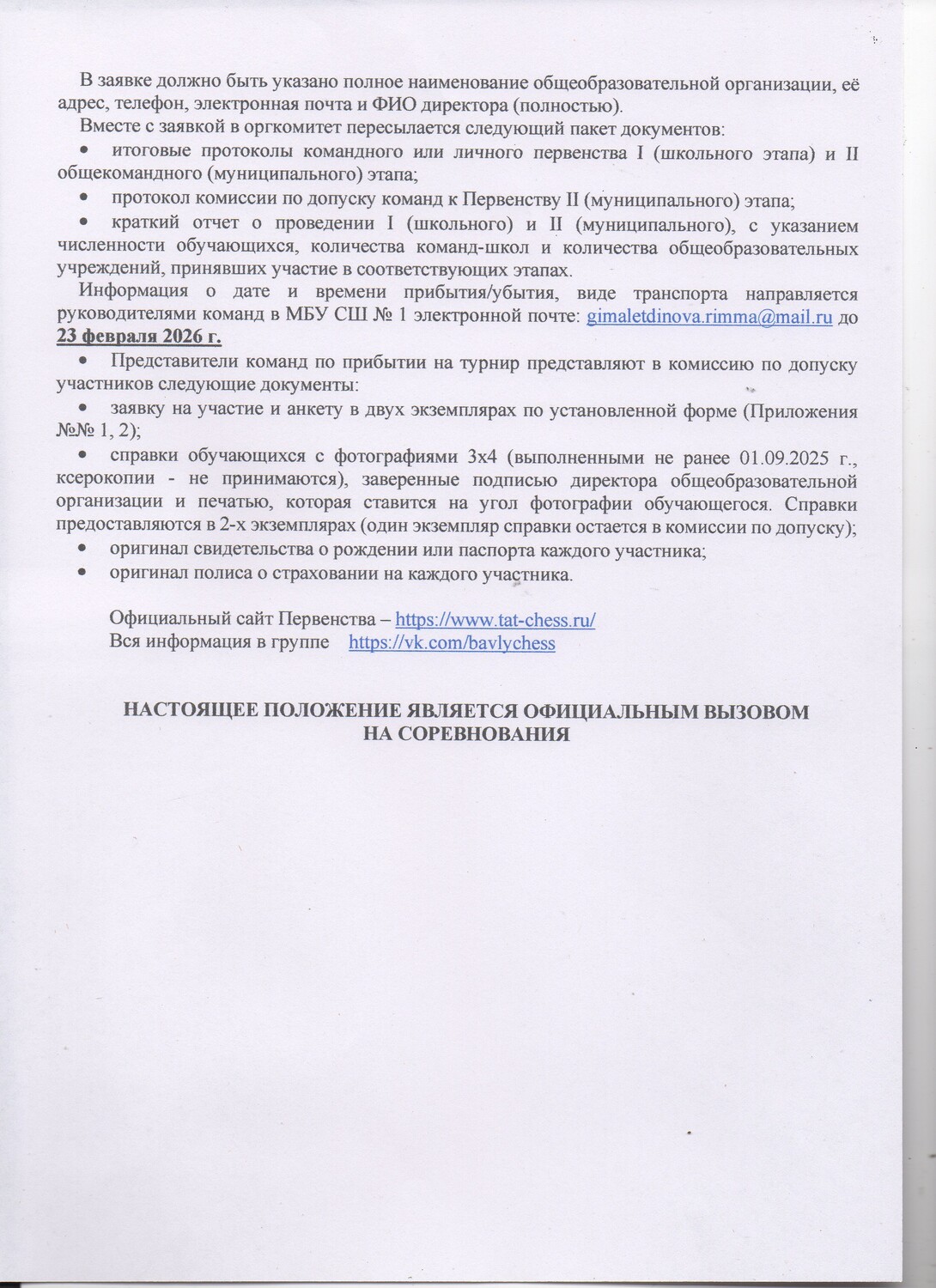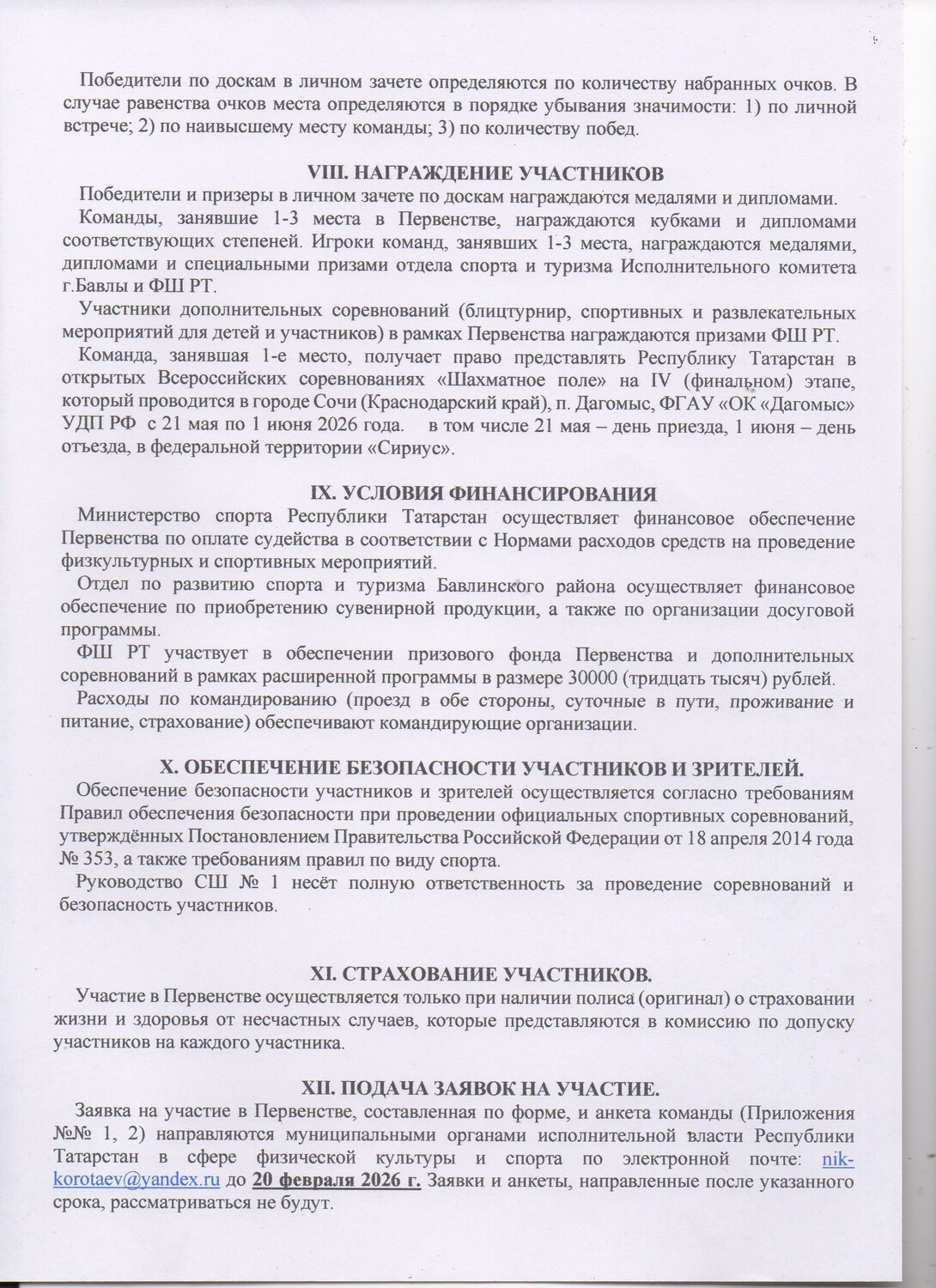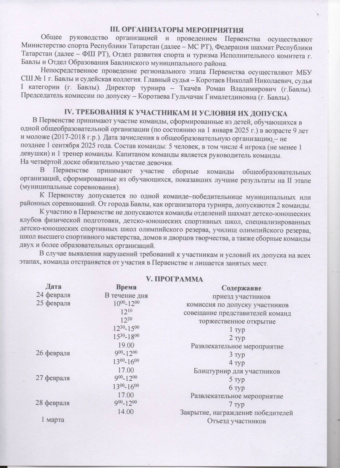 Первенство Республики Татарстан по шахматам среди команд общеобразовательных организаций "Дебют" пройдет в Бавлах с 24 февраля по 1 марта 2026 года