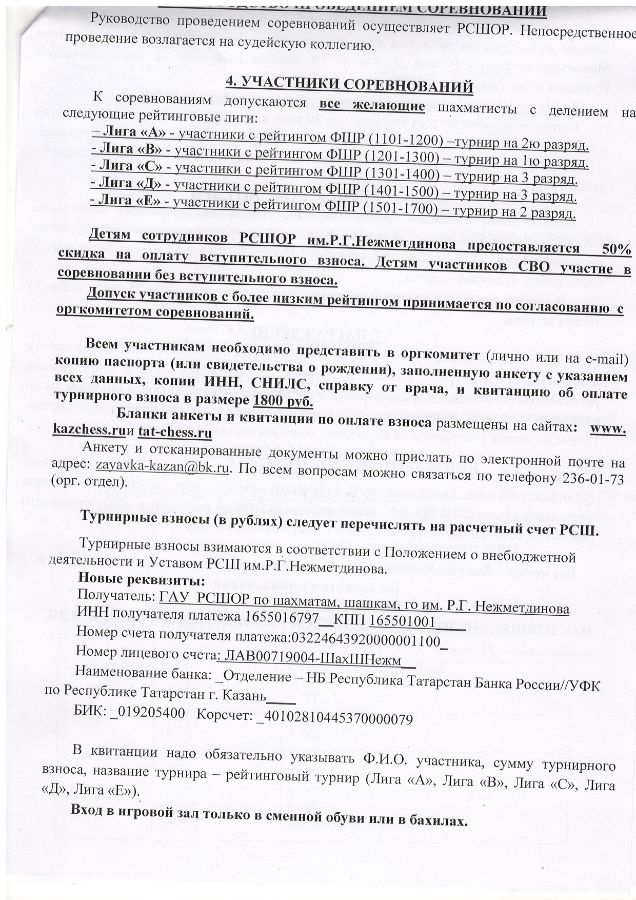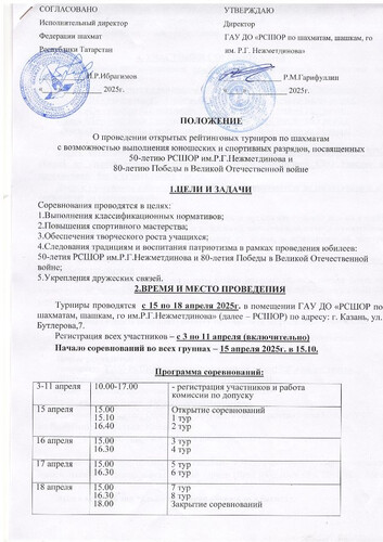 Рейтинговые турниры по шахматам проходили в РСШОР им.Р.Г.Нежметдинова с 15 по 18 апреля