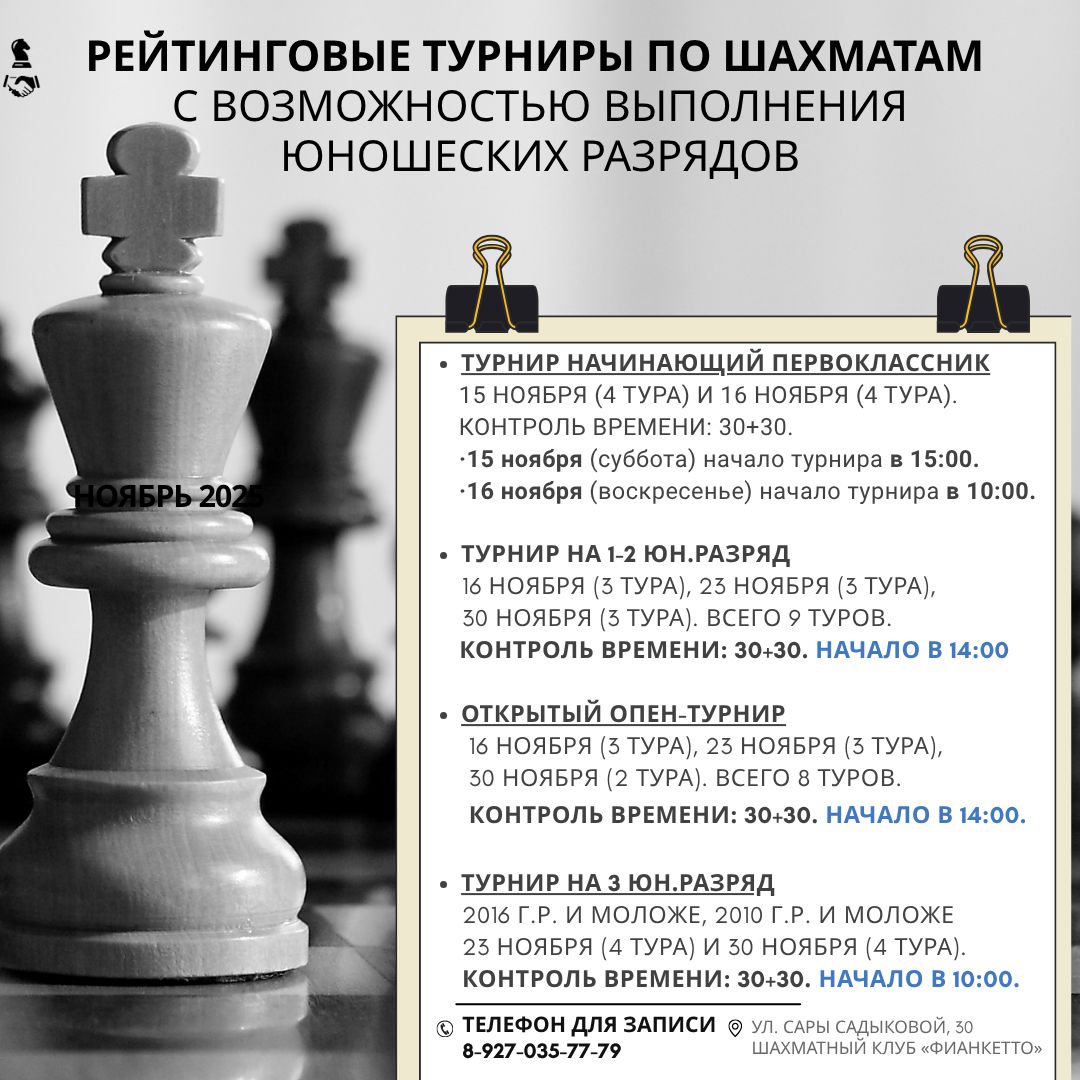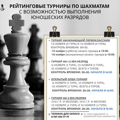 Рейтинговые турниры по шахматам в клубе "Фианкетто" в ноябре