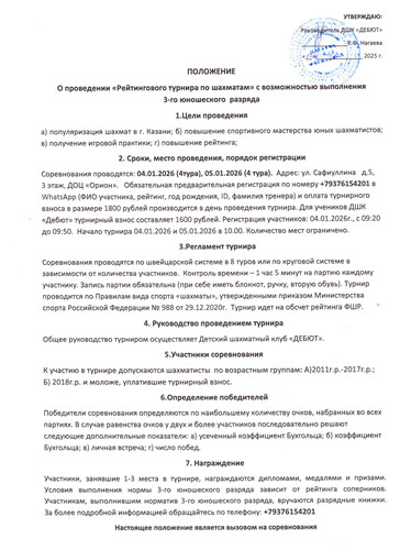 Главная » 2025 » Декабрь » 26 » Рейтинговые турниры в январе в клубе "Дебют"