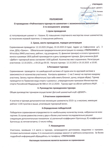 Рейтинговые турниры в октябре в клубе "Дебют" (ул.Сафиуллина, 5)