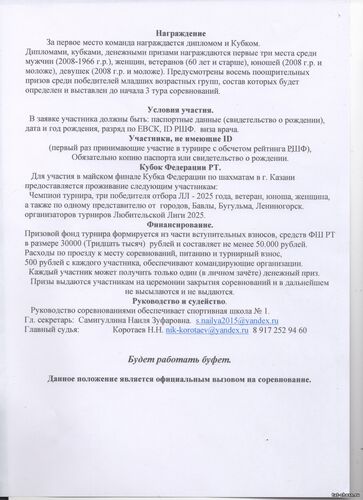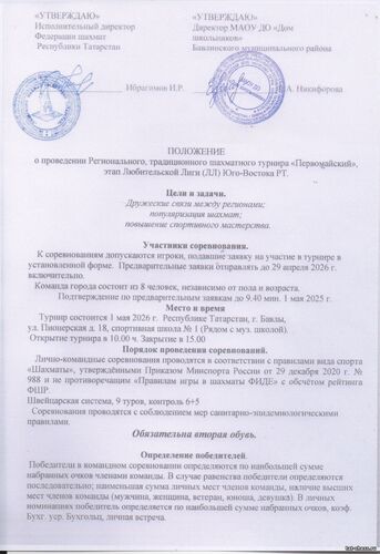 Региональный шахматный турнир "Первомайский" - этап Любительской Лиги Юго-Востока РТ состоится 1 мая в Бавлах