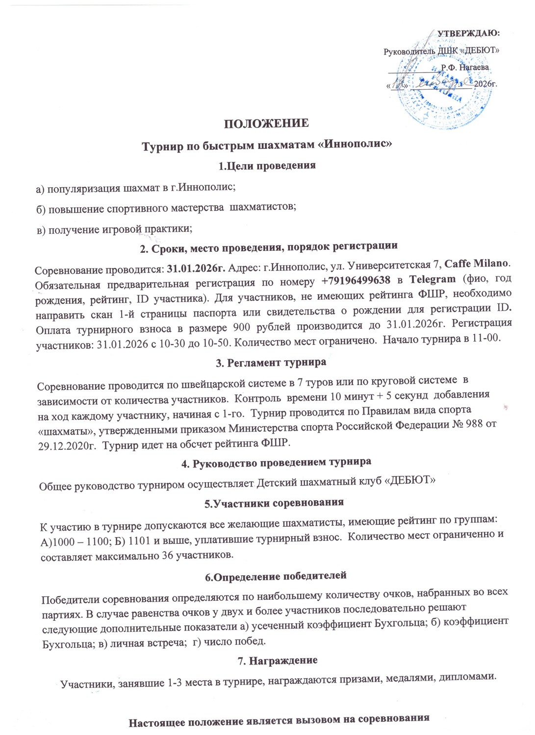 Турнир по быстрым шахматам состоится 31 января в г.Иннополис Положение  |