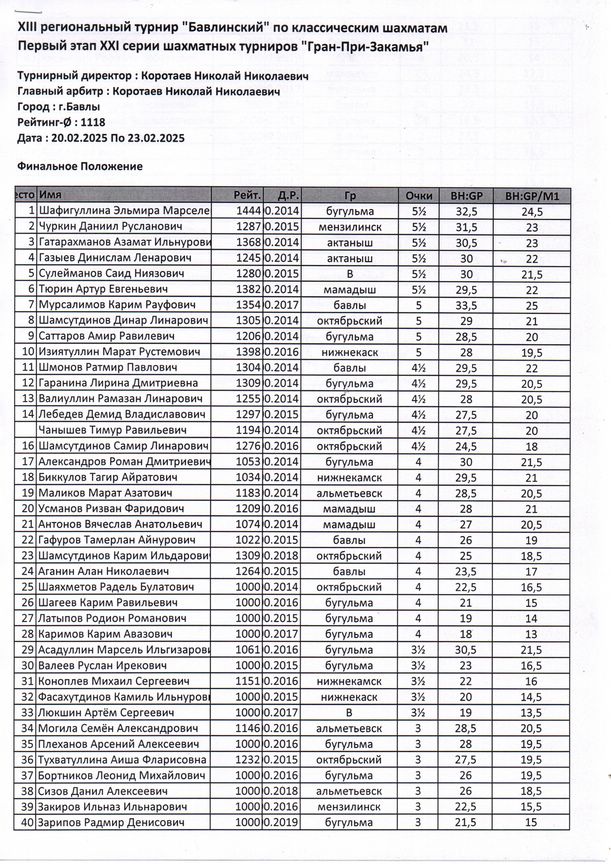 Турнир памяти А.А.Алехина в Бавлах