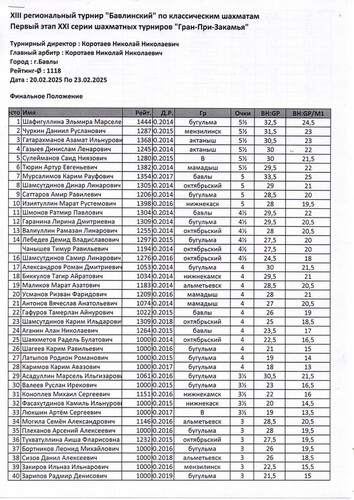 Блицтурнир в рамках Мемориала В.П.Яндемирова