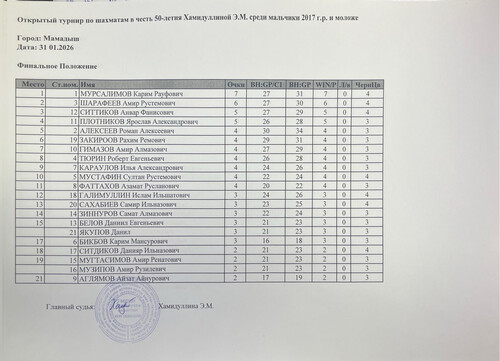 | Федерация шахмат Республики Татарстан © 2026 При использовании материалов ссылка на www.tat-chess.ru обязательна. Точка зрения редакции не обязательно совпадает с точкой зрения автора. Материалы не рецензируются и не возвращаются. | |||||||||||||||||||||||||||||