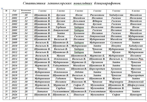ФотогалереяГлавная » Фотоальбом » 2026 » Лениногорский блицмарафон » Статистика