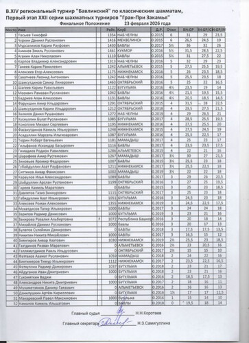 | Федерация шахмат Республики Татарстан © 2026 При использовании материалов ссылка на www.tat-chess.ru обязательна. Точка зрения редакции не обязательно совпадает с точкой зрения автора. Материалы не рецензируются и не возвращаются. | |||||||||||||||||||||||||||||