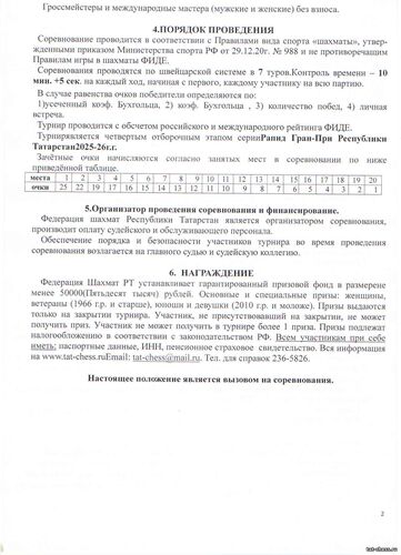 4 этап Рапид Гран При РТ состоится 25 января в РСШОР им.Р.Г.Нежметдинова Регистрация участников 25 января с 9.30 до 10.15 Начало 1 тура в 10.30
