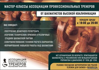 21-го февраля в среду в 18:00 приглашаем шахматистов с рейтингом 1050-1250, имеющих 2-ой и 3-й юношеские разряды на мастер-класс с Мастером ФИДЕ по шахматам, чемпионкой Республики Татарстан среди женщин, членом сборной Республики Татарстан, ведущим тренером Ассоциации Любовью Александровной Маркеловой. Тема мастер-класса: "Основные дебютные принципы на примере практических партий".