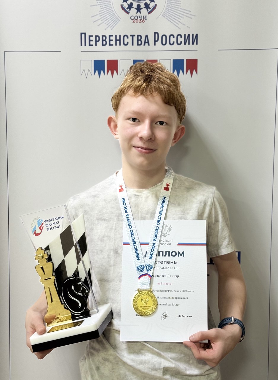 Поздравляем Фарзалеева Данияра с победой на первенстве России по шахматной композиции (решение) среди юношей до 15 лет!