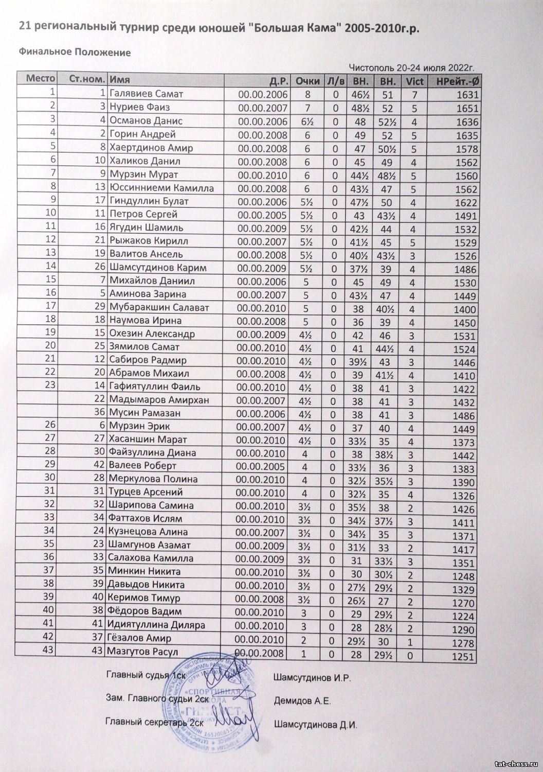 21 Региональный турнир "Большая Кама" проходил в Чистополе с 19 июля (день приезда) по 25 июля (день отъезда)