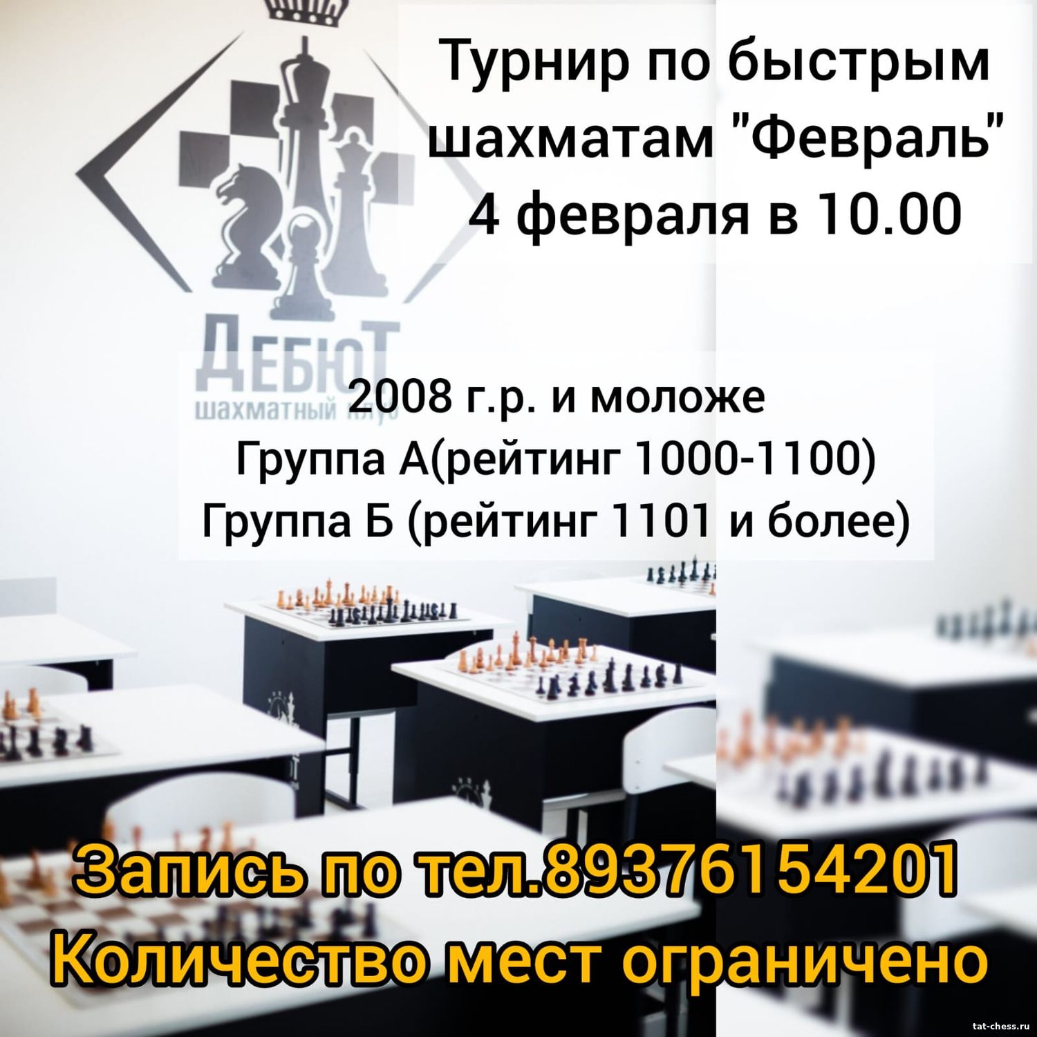 Турнир по быстрым шахматам "Февраль" пройдет 4 февраля в клубе "Дебют" (ул.Сафиллина, 5)
