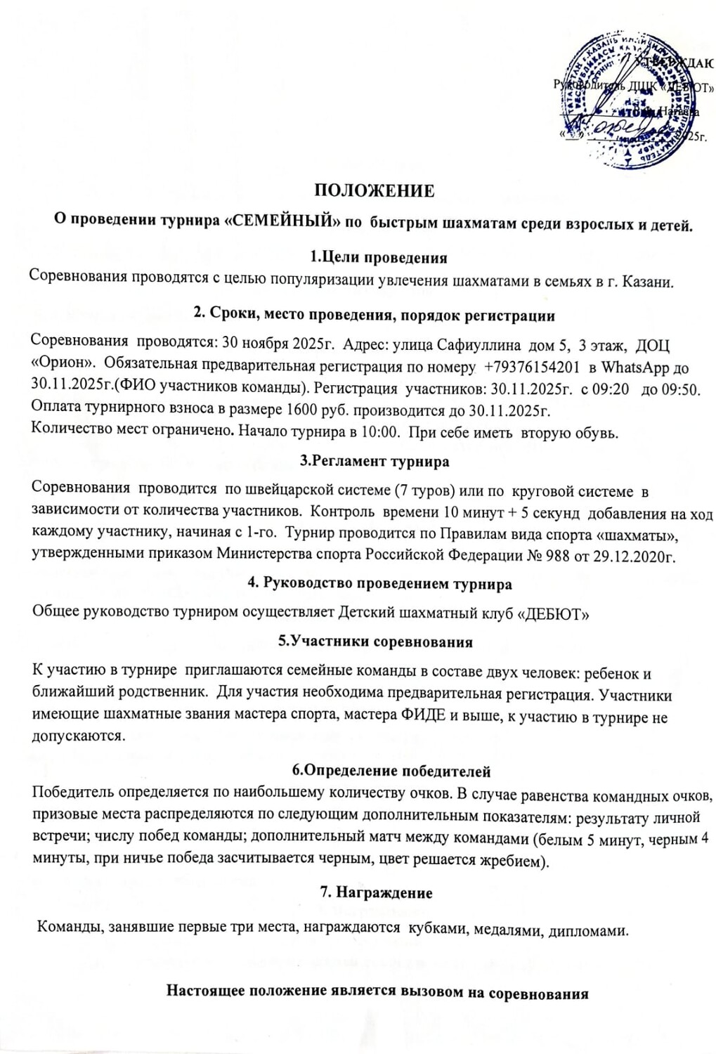 Турнир "Семейный" пройдет 30 ноября в ДОЦ "Орион" (ул.Сафиуллина, 5)
